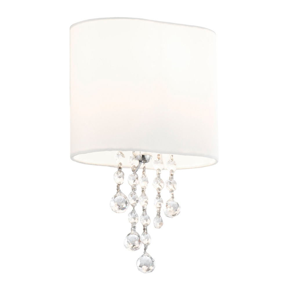 NINA - 1x zdroj, přisazené svítidlo na stěnu, chrom, čirý křišťál, bílé stínidlo