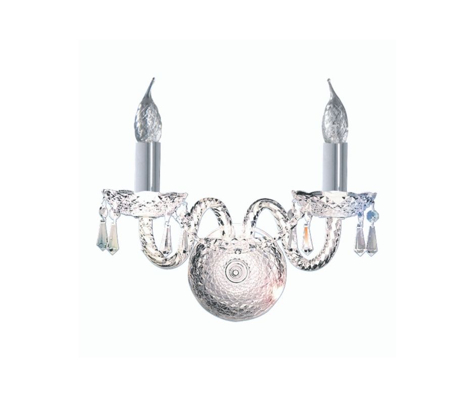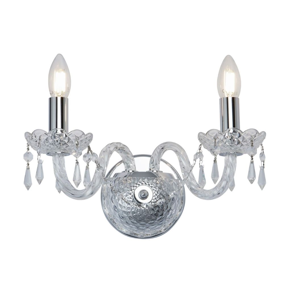 HALE 2x zdroj, přisazené georgiánské svítidlo na stěnu, chrom, čiré křišťálové ověsy