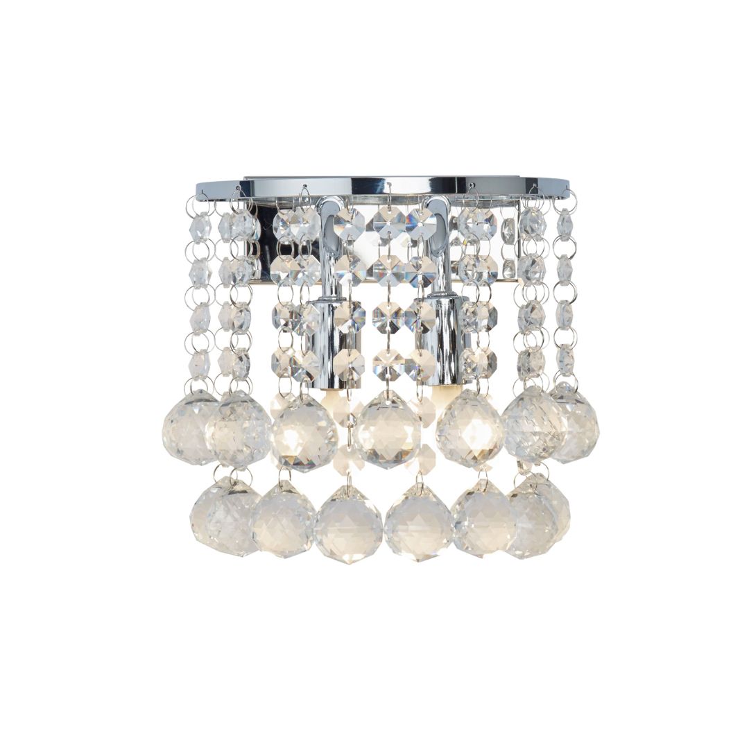 HANNA - 2x zdroj, přisazené svítidlo na stěnu, chrom, čiré křišťálové kuličky