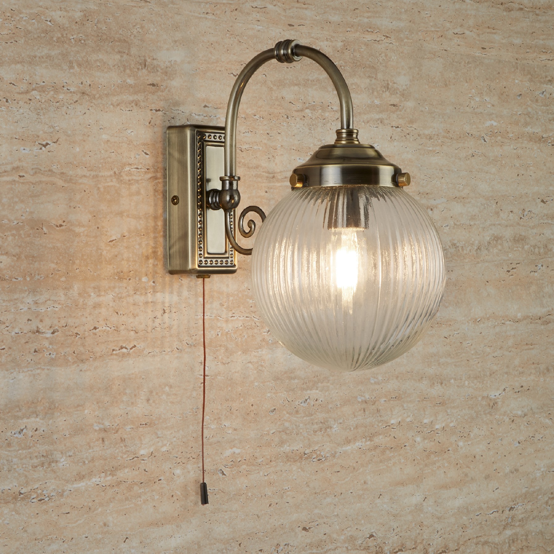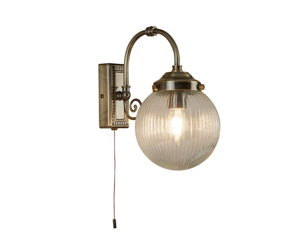BELVUE 1x zdroj, BATHROOM IP44 svítidlo přisazené na stěnu, čiré kulaté stínidlo, antická mosaz