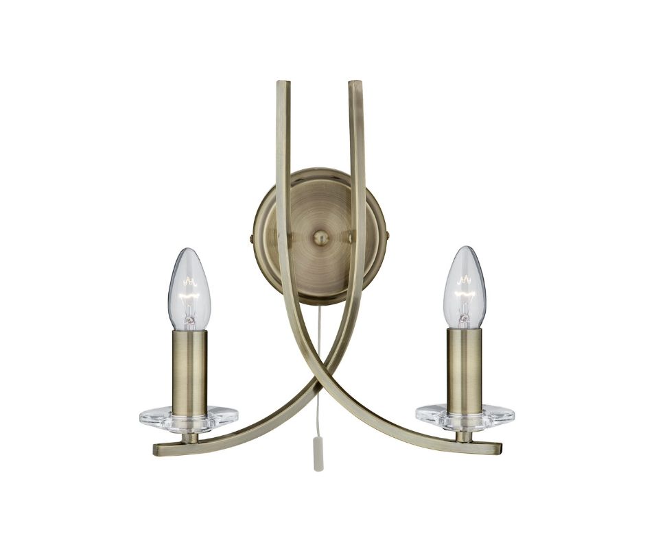 ASCONA - 2x zdroj, přisazené svítidlo na stěnu, antická mosaz prohnutá ramena a čiré sklo svícen