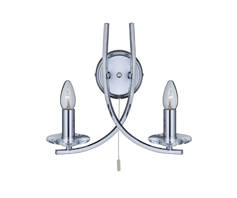 ASCONA - 2x zdroj, přisazené svítidlo na stěnu, chrom prohnutá ramena a čiré sklo svícen