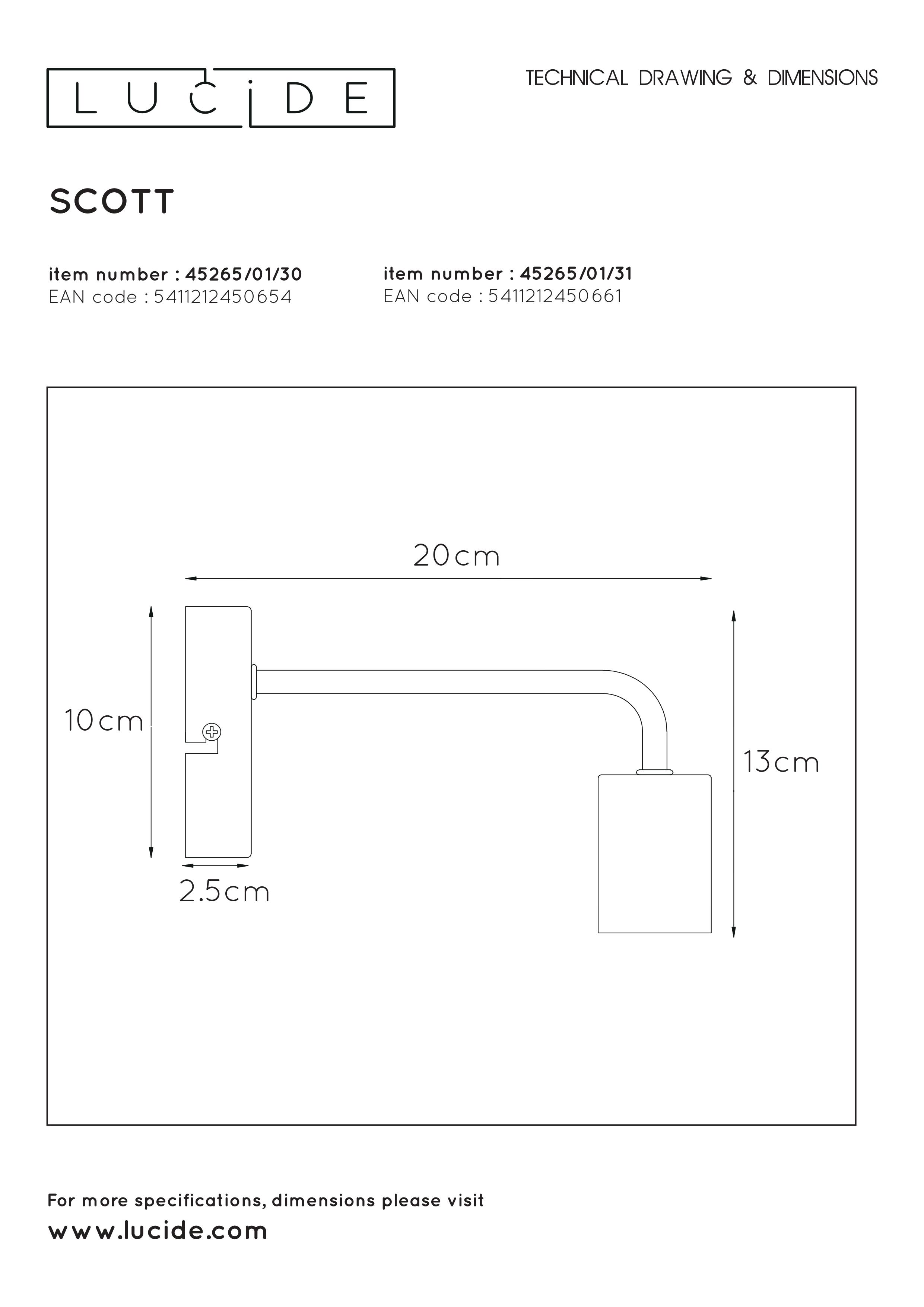 Scott je nástěnné světlo, které je úžasné díky své jednoduchosti. Krásná povrchová úprava v matně lakovaném kovu vytváří jednoduchý, ale přitažlivý výsledek. Zvláště pokud máte více modelů za sebou. Kdekoliv instalujete svítidlo Scott, měli byste jako světelný zdroj vybrat žárovku. To vám umožní vytvářet jedinečnou atmosféru