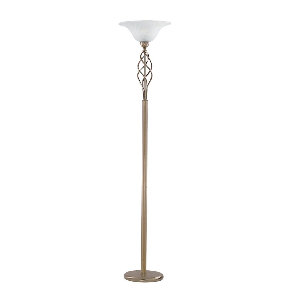 UPLIGHTER stojací lampa, antická mosaz, mramorové stínidlo