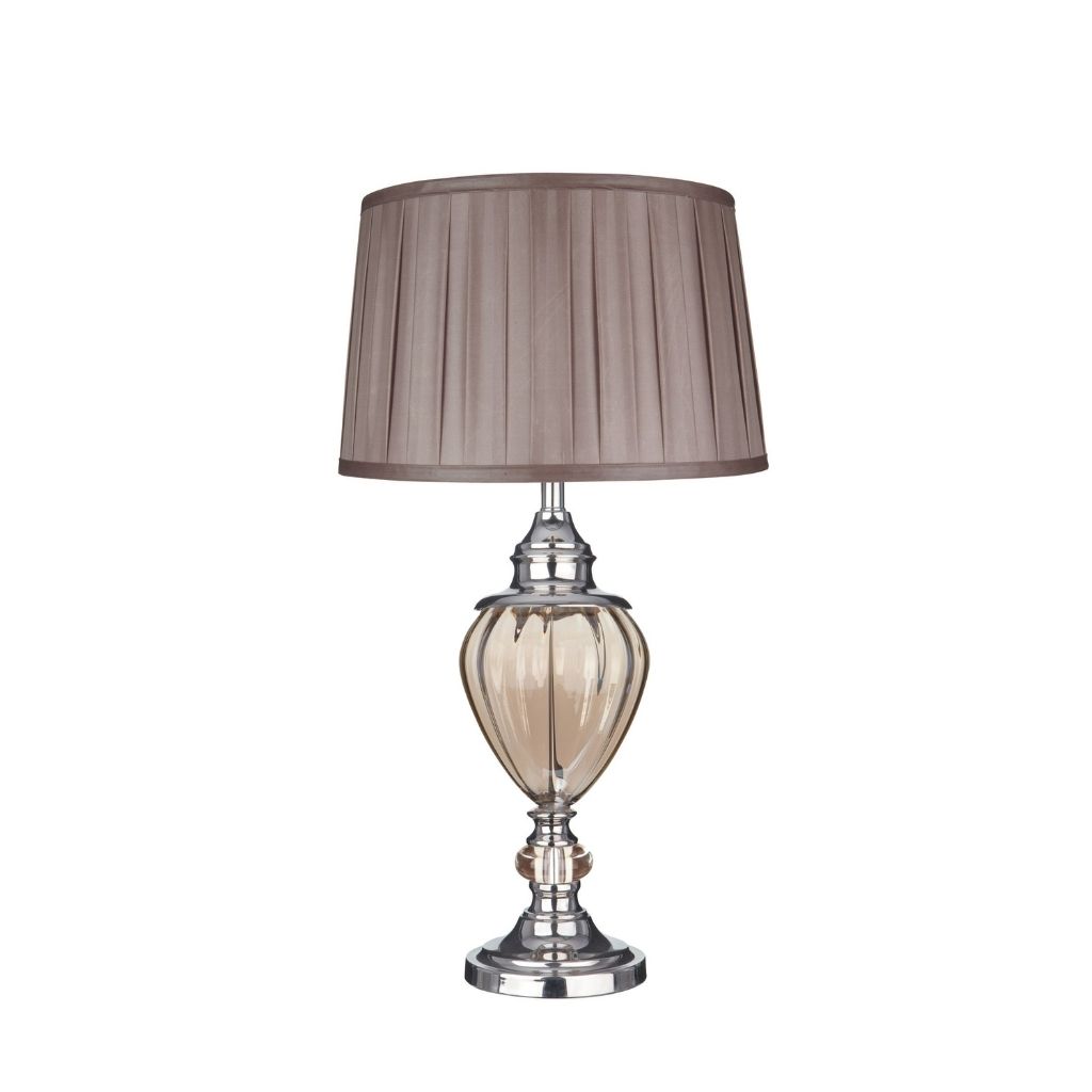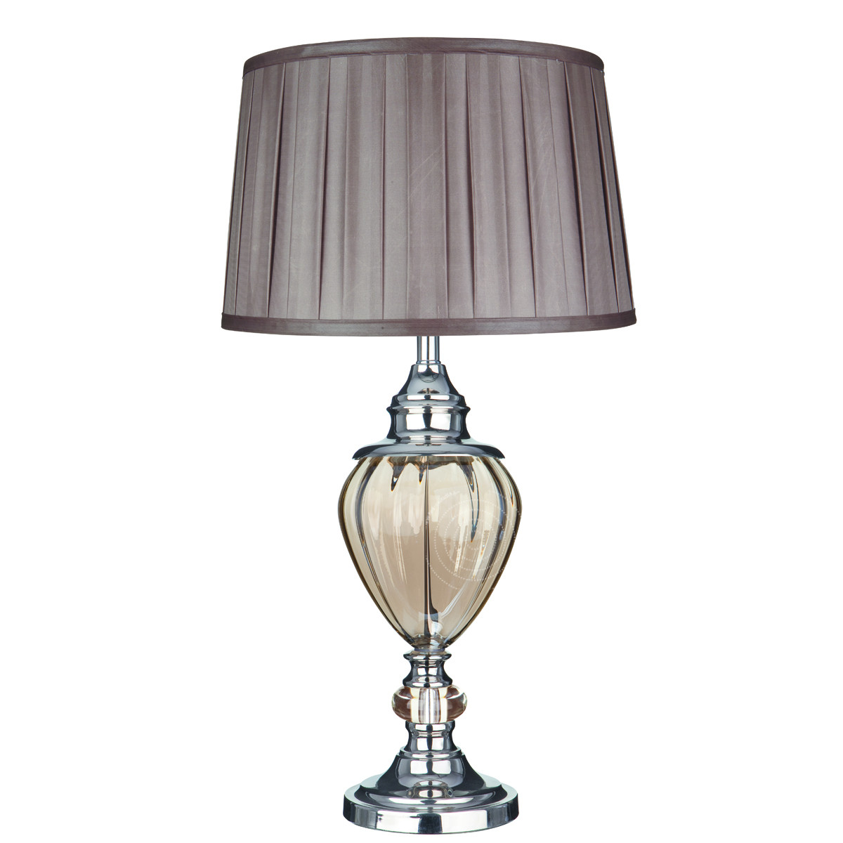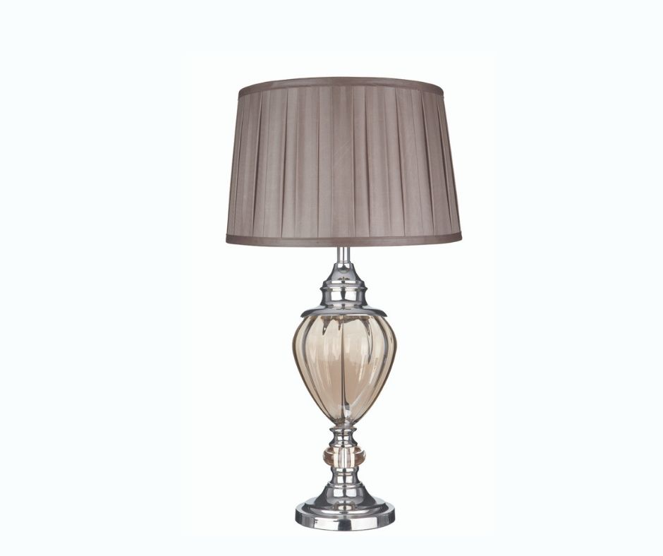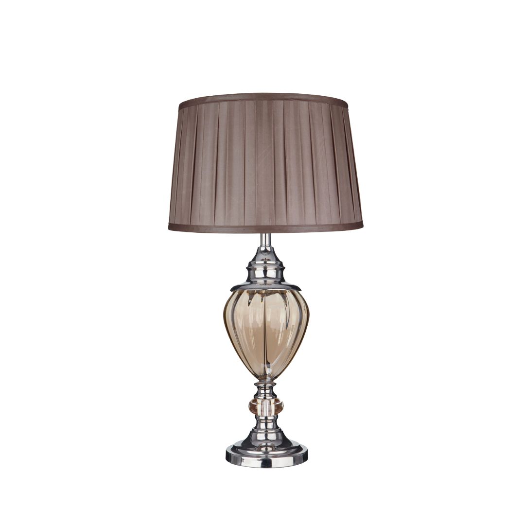 GREYSON stolní lampa, amber sklo, chrom, hnědé, skládané stínidlo