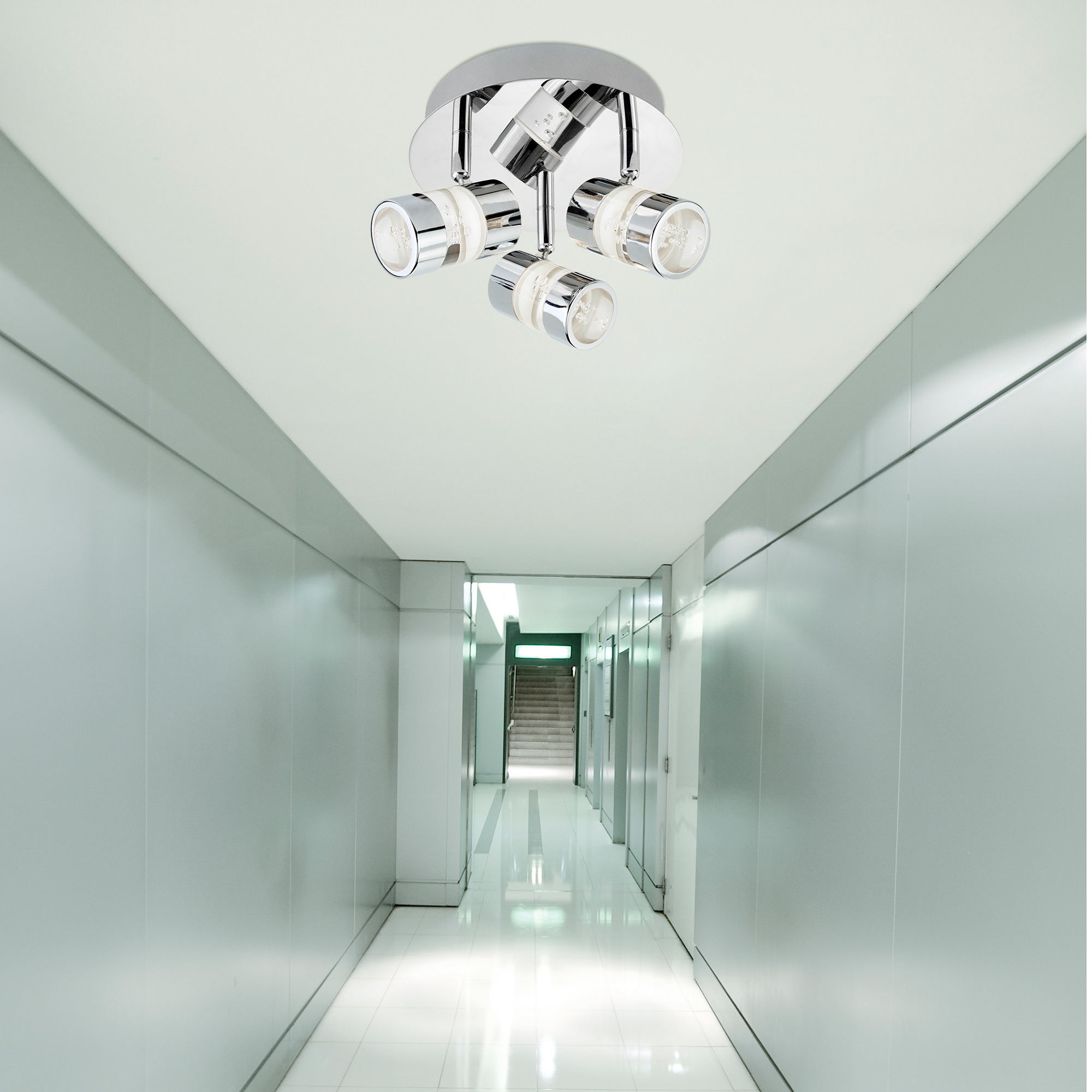 BUBBLES IP44 LED 3x zdroj, reflektory na kruhové základně chrom, akryl stínidlo