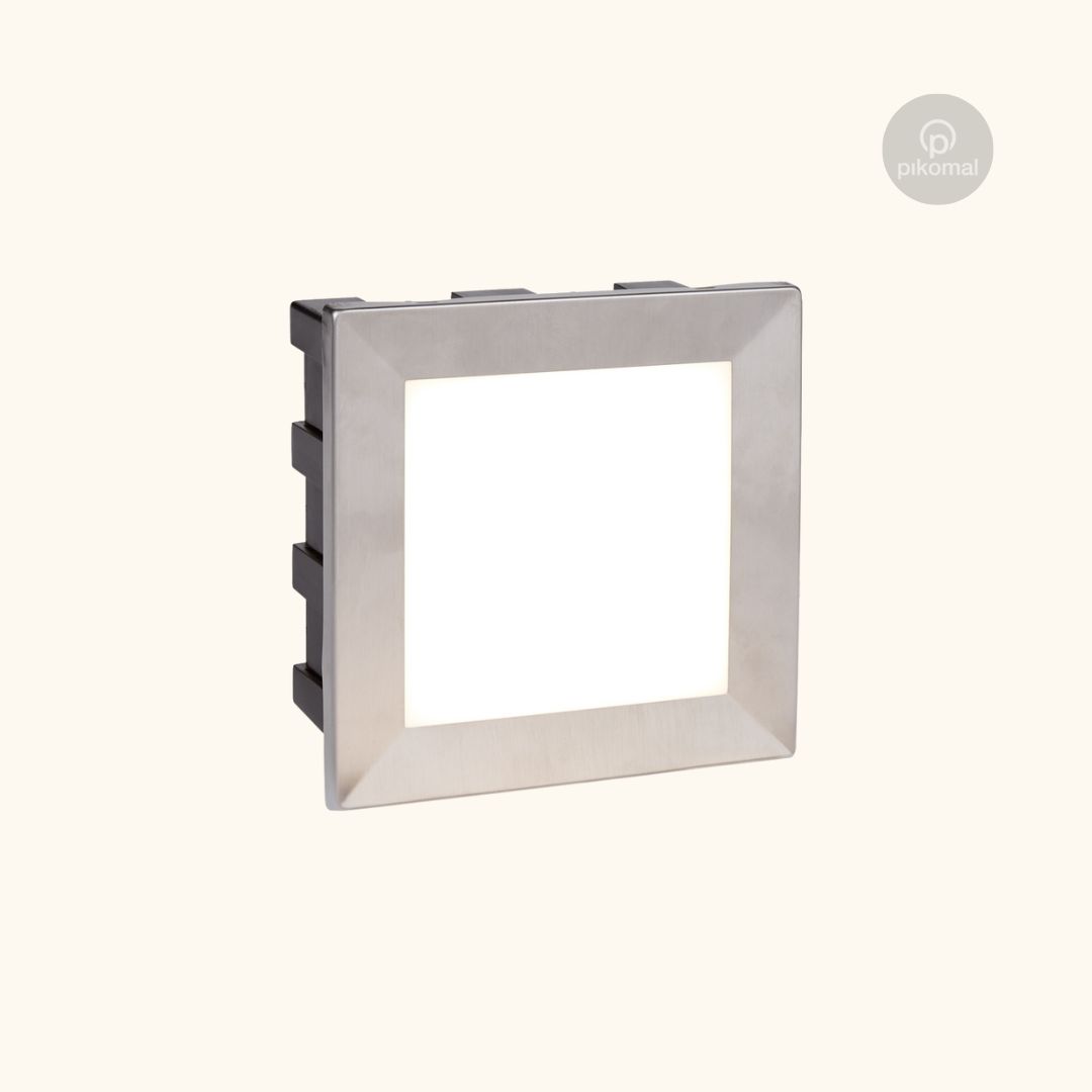 Zápustné venkovní svítidlo s integrovanou 3,5W LED 165 lumenů a barva světla je 4000K. Svítidlo má rozměr 13,5x13,5x5,5cm.