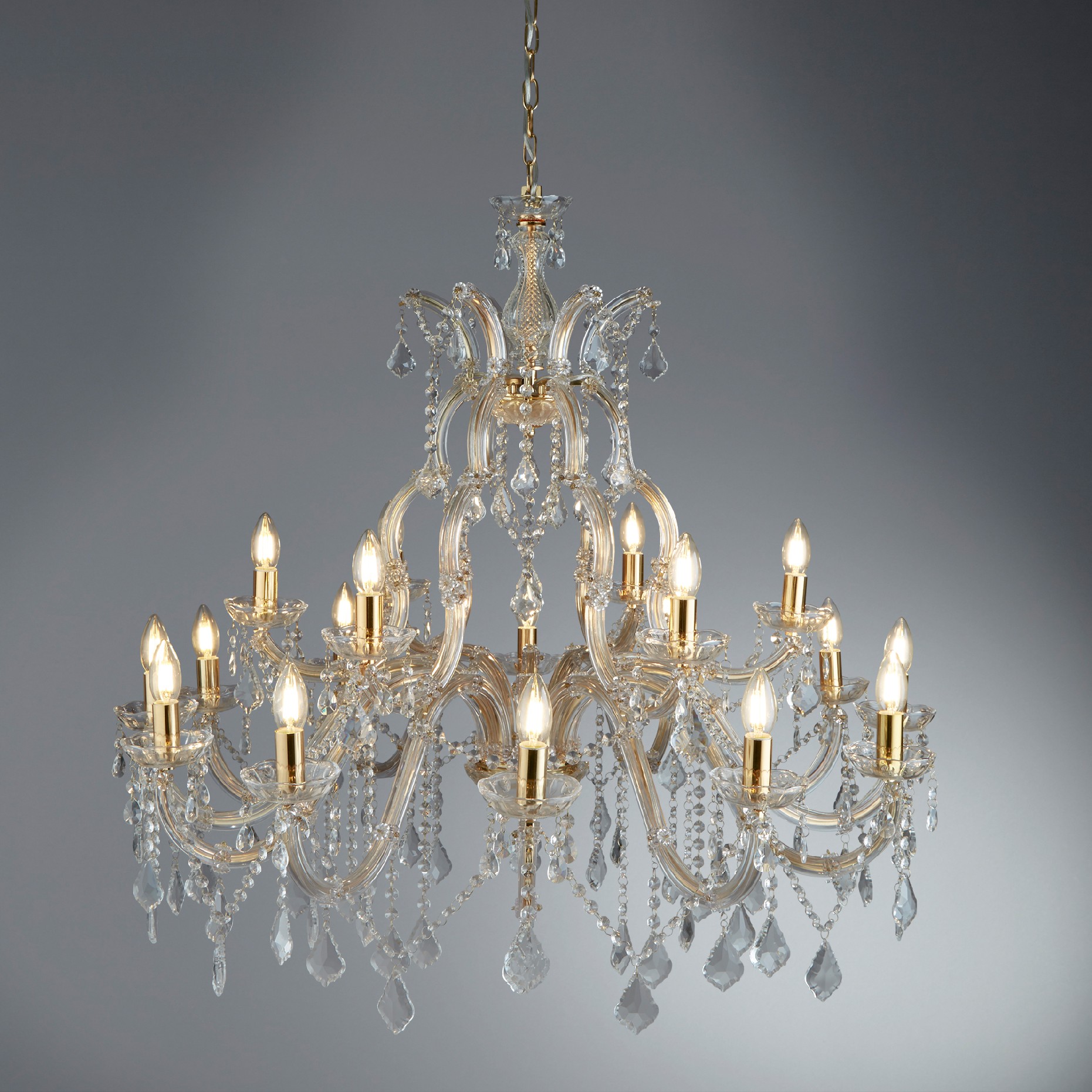MARIE THERESE - 18x zdroj, lustr, leštěná mosaz, čirý křišťál