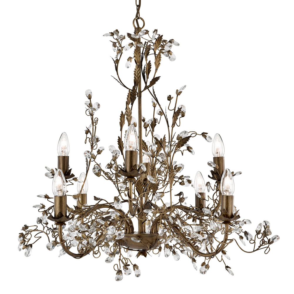 ALMANDITE - 8x zdroj, závěsné svítidlo, hnědo zlatý povrch a čiré křišťálové ozdoby