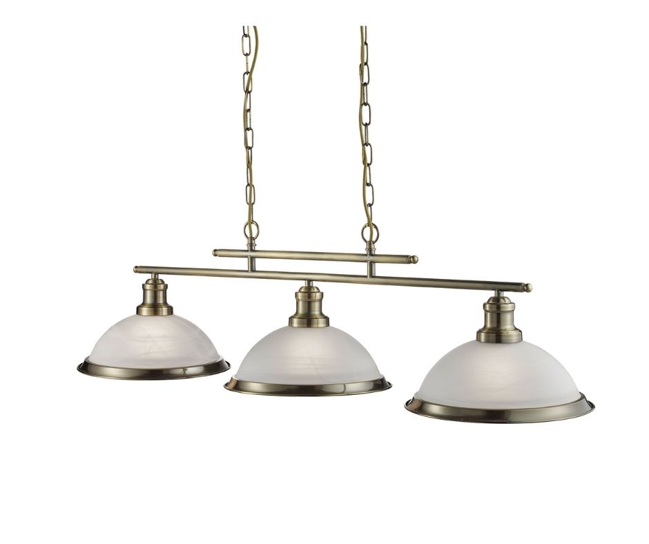BISTRO - 3x zdroj, závěsné svítidlo nad jídelní stůl, antická mosaz, mramorované sklo