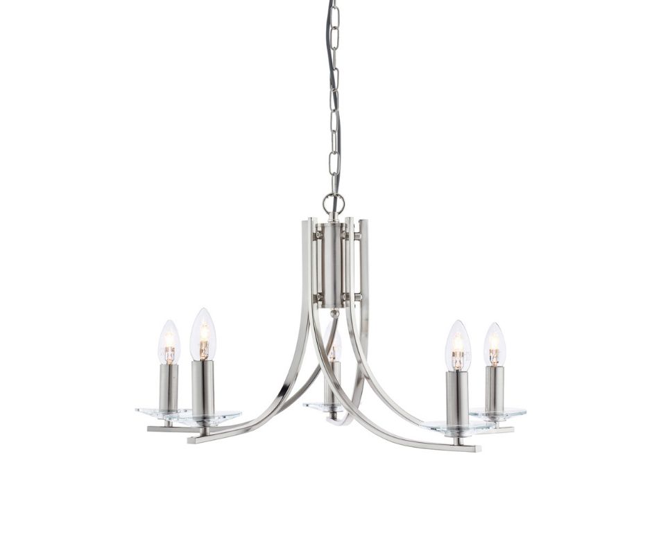 ASCONA - 5x zdroj, závěsné svítidlo, chrom prohnutá ramena a čiré sklo svícen