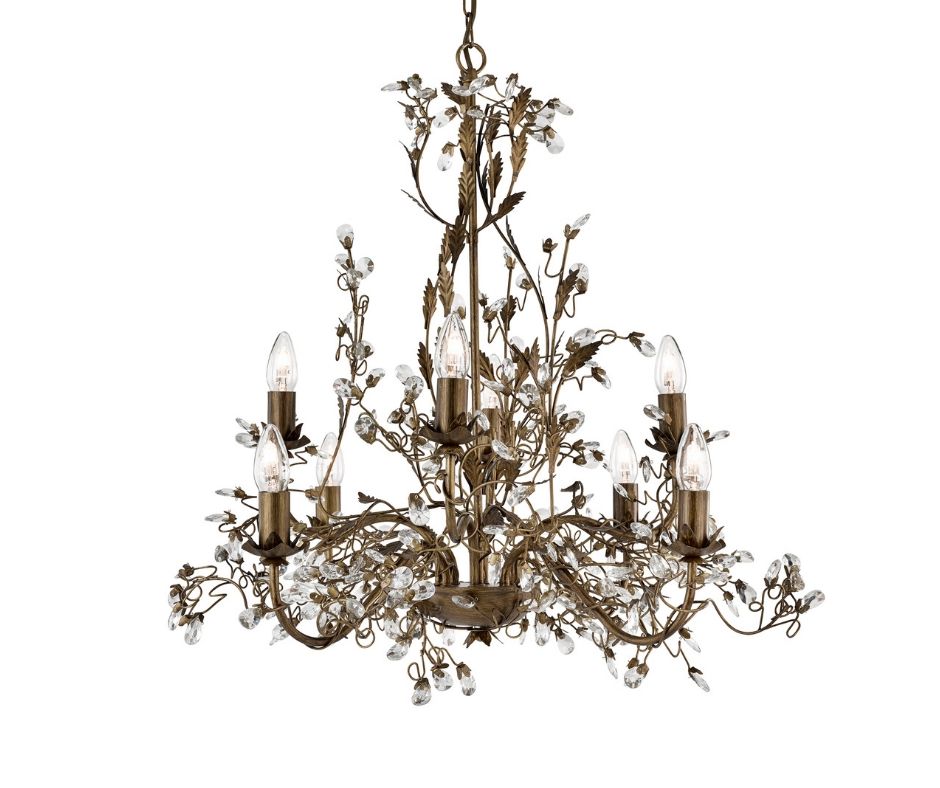 ALMANDITE - 8x zdroj, závěsné svítidlo, hnědo zlatý povrch a čiré křišťálové ozdoby