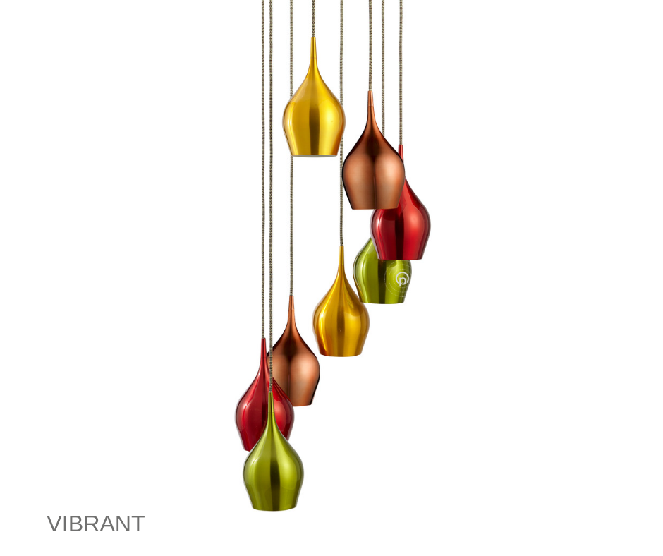 VIBRANT 8x zdroj, nad jídelní stůlevná (červená, zelená, zlatá, měděná) stínítka