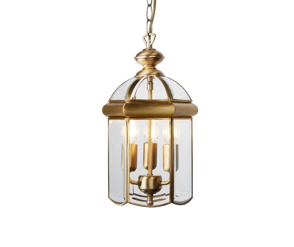 LANTERN antická mosaz, sklo, 3x zdroj,