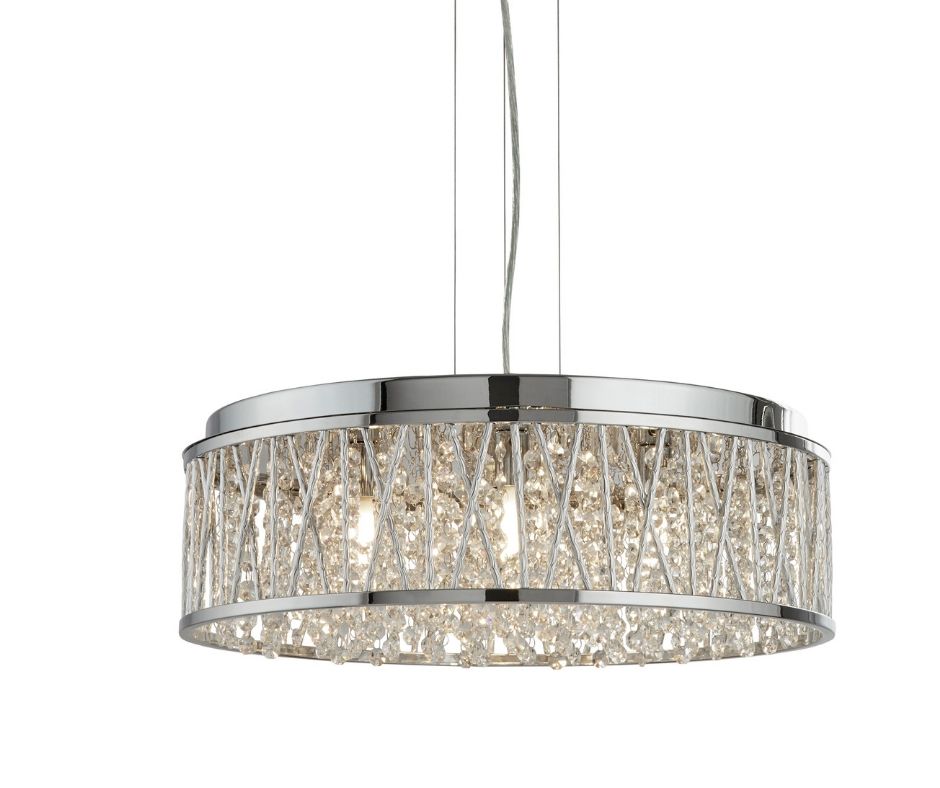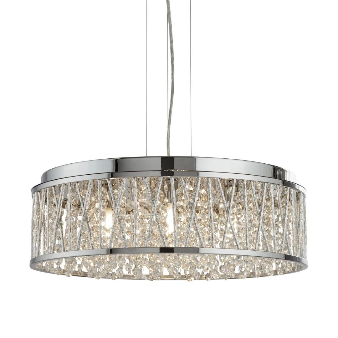 ELISE 7x zdroj, přisazené svítidlo na strop/závěs, chrom, čiré křišťálové pecičky, aluminiové kroucené tyčinky