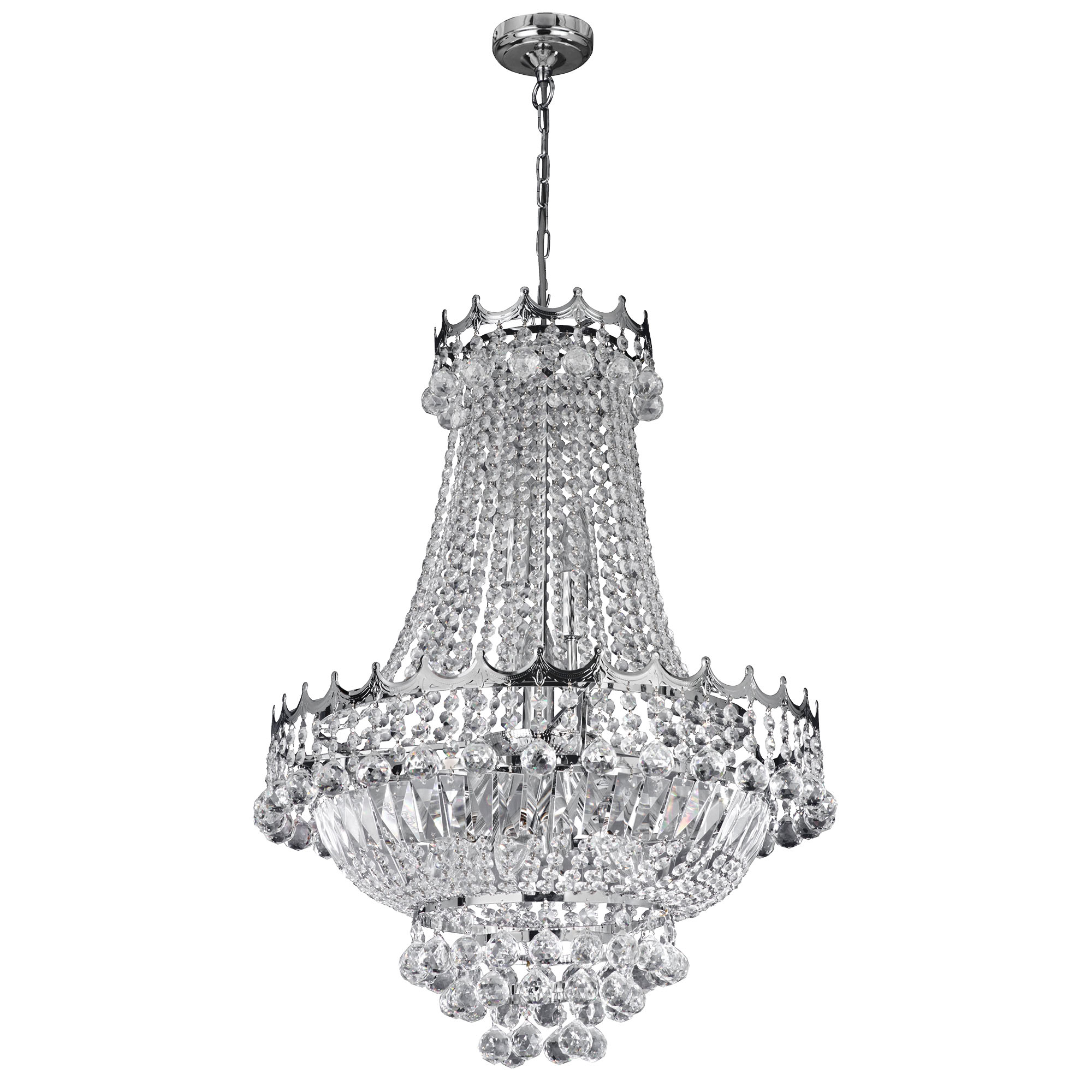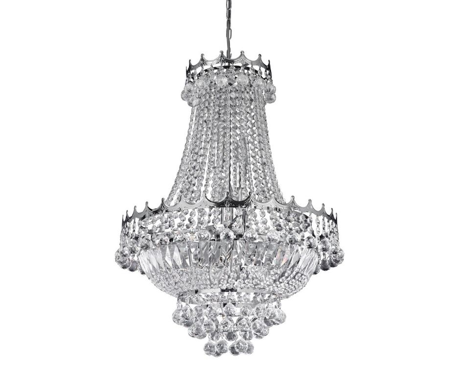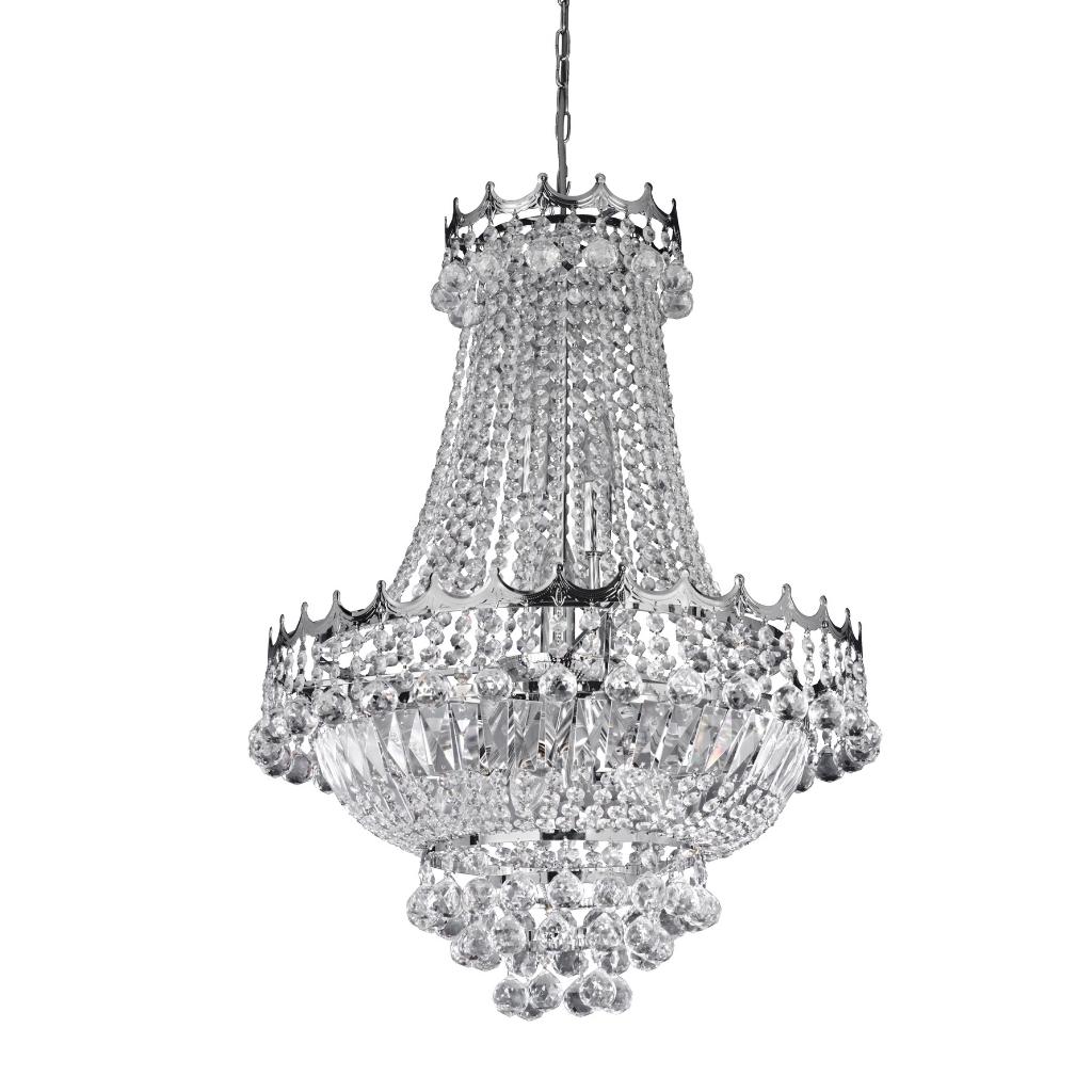 VERSAILLES - 9x zdroj, (PR 52cm) lustr, chrom, čiré křišťálové ověsy