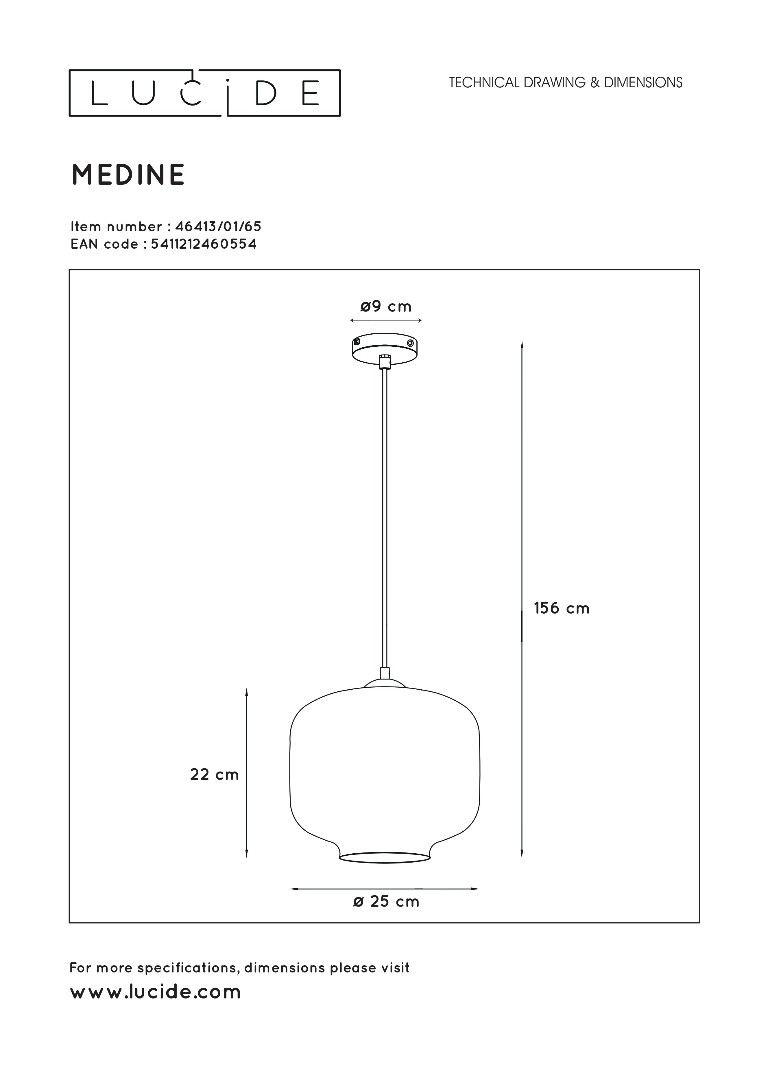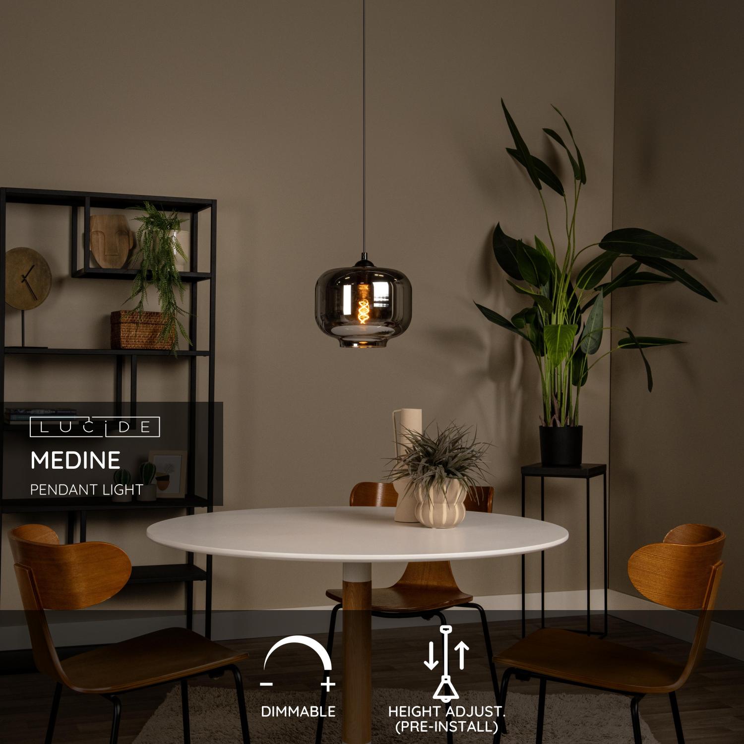 MEDINE Pendant 1x E27 40W Smoke Glass